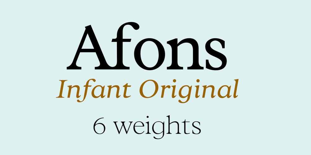 An easy-to-read, rounded typeface with a large x-height, based on Plantin, making it excellent for long-form text copy. Afons Infant Original has clear, well-defined shapes, in five weights, making it perfect for early readers.
